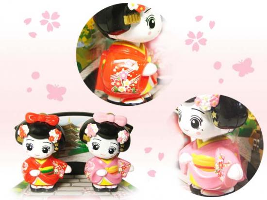 Традиционный японский сувенир "МАЙКО ЧАН", в переводе "танцующее дитя". На солнечной батарее. Майко являются частью традиционной культуры японских развлечений, называемой карюкай. Цвет: красный, розовый.