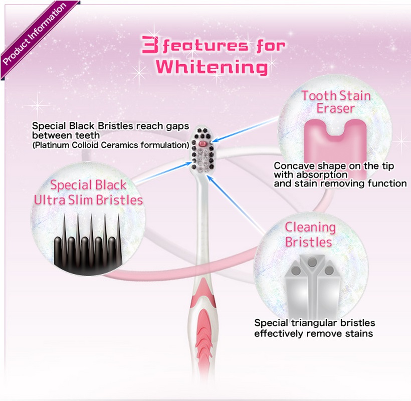 PCC (платиновая коллоидная керамика) в Составе щетинок позволяет эффективно ухаживать за полостью рта даже без использования зубной пасты